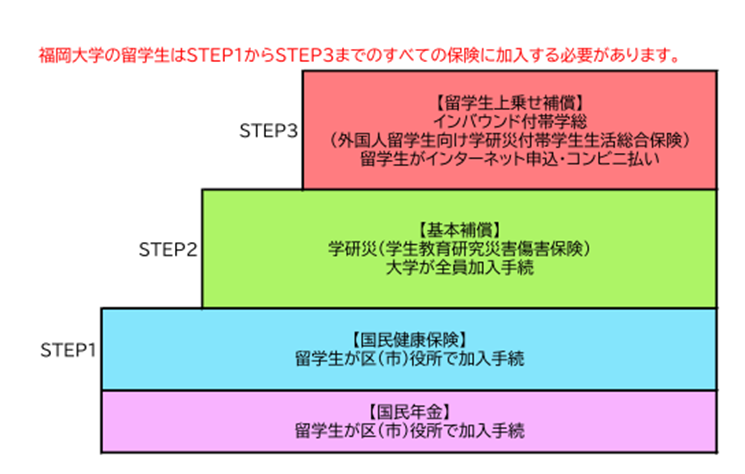 福岡大学では、原則として在学中の留学生全員が加入することを強く推奨しています。